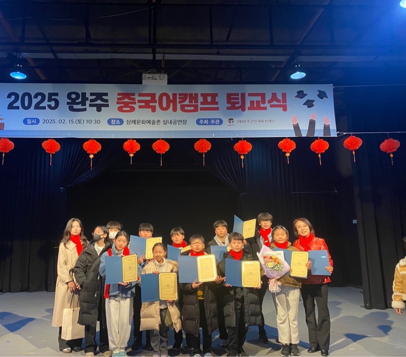 2025년 2월 중국어캠프 퇴교식 페이지 정보 작성자 : 인재육성재단 작성일 : 25-10-13 16:43 조회 : 16회 첨부파일 본문 2025년 2월 중국어캠프 퇴교식 이전글2025년 3월 영어·중국어학교 입학식 25.10.13 다음글2025년 2월 중국어캠프 25.10.13 목록
